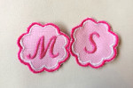 ピンクの生地にお花とイニシャルを刺繍したワッペン。 ≪参考サイズ≫ たて約4.5cm×よこ約4.5cm アイロン接着、縫い付け、どちらも可能。 生地や刺繍糸の色、サイズなど変更可能。 ![]()
